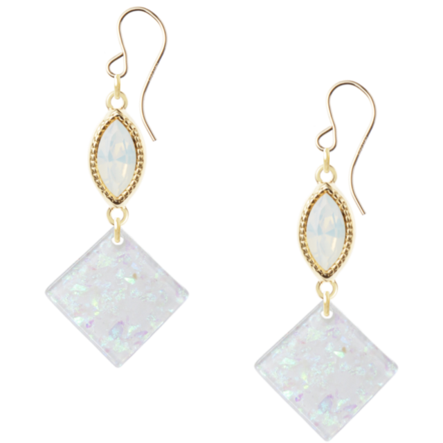 #スワロフスキー #真鍮 #変形 #ゴールド #金 #ホワイトオパール #白 #中間パーツ #キラキラ #封入 #チャーム #アレルギー対応 #ゴールドフィルド #ピアス #14KGF