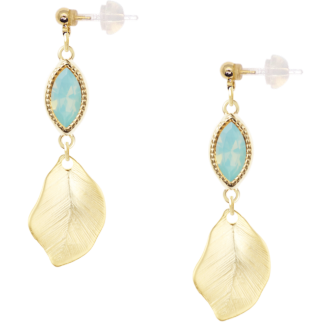 スワロフスキー・リーフチャームピアス ~パシフィックオパールの煌めきと自然の優雅さ~